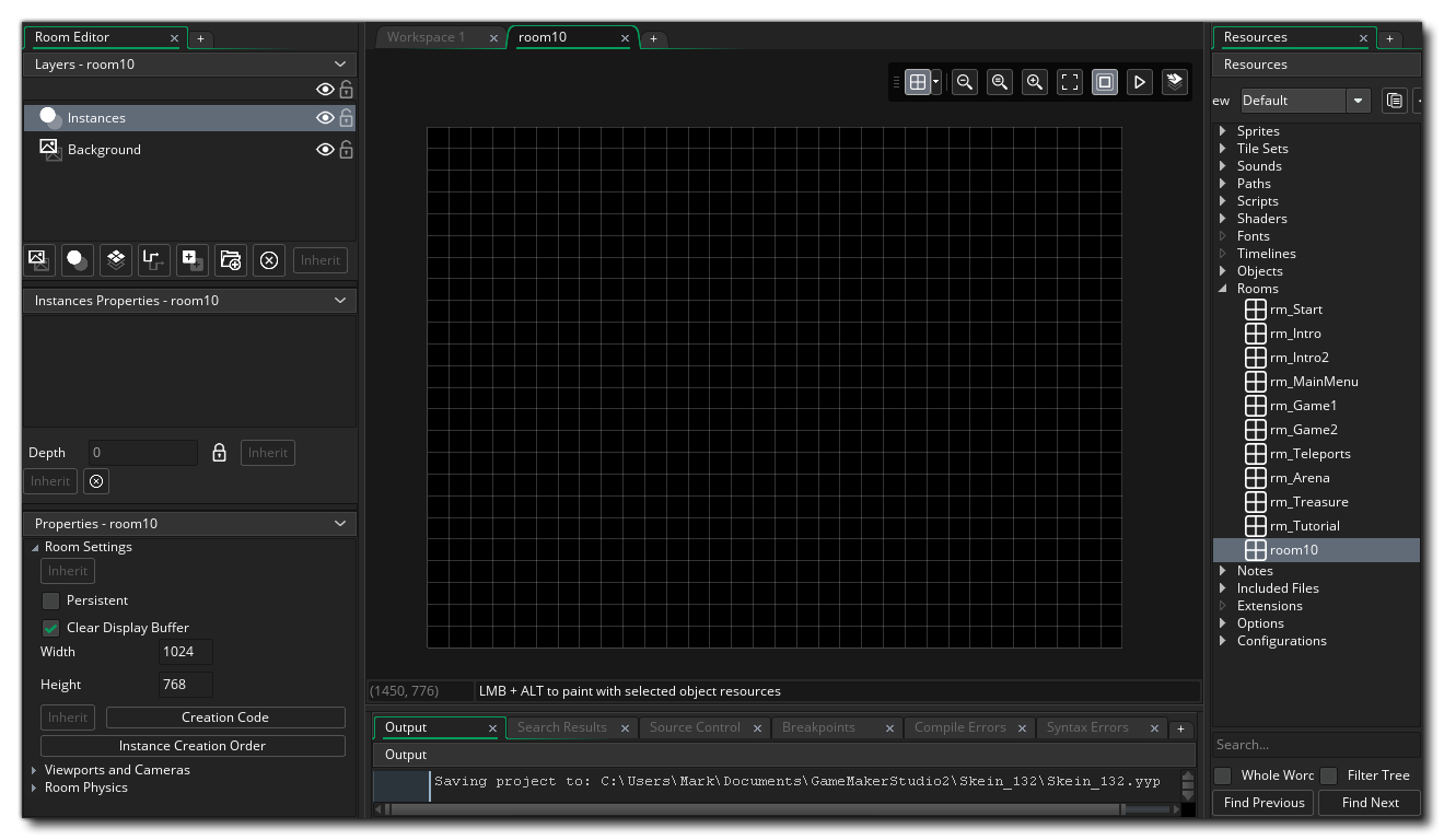 Tous les jeux que vous créez dans GameMaker Studio 2 besoin d'au moins une pièce (mais ils peuvent en avoir beaucoup, beaucoup plus), et une pièce est juste un espace où vous placez des instances des objets qui composent votre jeu ainsi que des tuiles et toutes les autres ressources graphiques. Lorsque vous créez une pièce pour la première fois dans votre arborescence de ressources, une nouvelle fenêtre s'affiche pour éditer ses propriétés, par exemple: