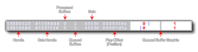 - Data Handle - Le handle de tampon OpenAL (affiche la même valeur pour plusieurs sons avec la même poignée source)