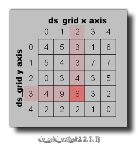 Cette fonction peut être utilisée pour définir une cellule donnée dans le ds_grid donné à n'importe quelle valeur, qui peut être un nombre réel ou une chaîne. L'image ci-dessous illustre ceci: