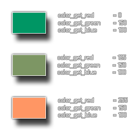 Cette fonction renvoie la quantité de rouge utilisée pour rendre la couleur donnée, la valeur étant comprise entre 0 et 255, où 0 n'est pas rouge et 255 est tout rouge. L'image suivante illustre ceci: