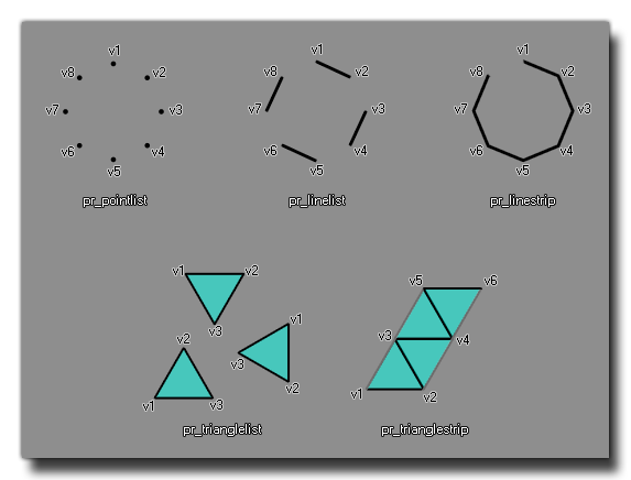 Cette fonction doit être appelée avant de pouvoir définir des primitives. Il existe 6 types de primitives que vous pouvez définir avec les constantes suivantes: