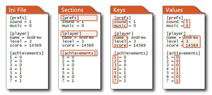 Vous pouvez utiliser cette fonction pour écrire une chaîne (texte) dans un fichier de données ini. Les fichiers Ini sont divisés en sections et chaque section est ensuite divisée en paires clé - valeur. Donc, un fichier ini typique ressemblerait à ceci: