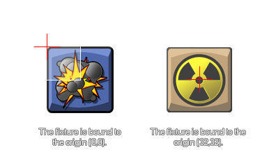 Le fixture sera lié à l'instance avec le centre de masse positionné à l'origine de l'instance, et les fixations polygonales sont liées en fonction de la position des points par rapport à l'origine. Si vous souhaitez que votre appareil soit lié à un point autre que l'origine, vous devez utiliser physics_fixture_bind_ext.