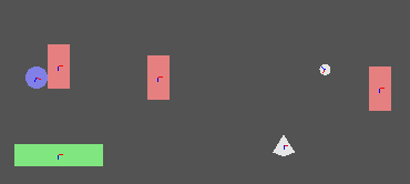 Comme vous pouvez le voir avec le code ci-dessus, seules les formes et centres de masse sont dessinés à l'écran (ainsi que les couleurs représentant leurs états - pour plus d'informations, veuillez consulter la documentation Box 2D en ligne). De la même manière, vous pouvez afficher plus, voire toutes, les constantes que vous souhaitez déboguer... Juste "ou" tous ensemble! Une autre chose est à noter: cette fonction doit être appelée uniquement dans l'événement draw d'une instance dont la profondeur est inférieure à celle que vous souhaitez déboguer, sinon vous ne pourrez pas voir les informations de débogage.