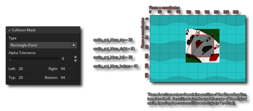 Cette fonction renvoie la position relative du bas de la boîte englobante. Cette valeur est donnée sous la forme d'une valeur relative basée sur le coin supérieur gauche de l'actif de l'image-objet de base (0,0). c'est la même valeur que celle qui peut être trouvée dans l'éditeur de sprites pour les propriétés du masque de collision. L'image ci-dessous montre comment elle est calculée: